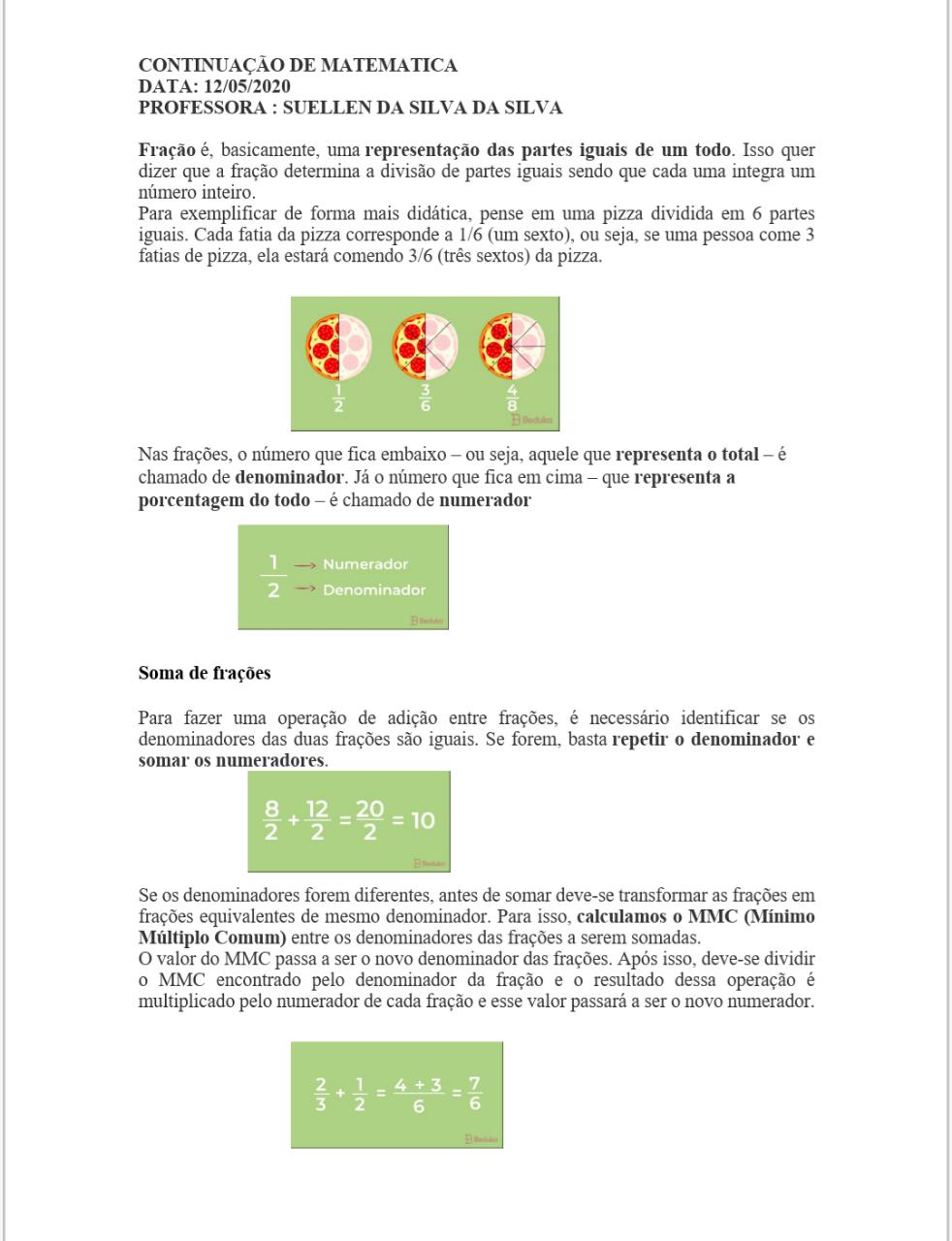 RETORNO DESSAS ATIVIDADES DIA 06/05/2020